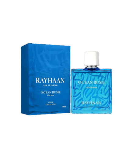 O Ocean Rush da Rayhaan é um perfume masculino aromático aquático, focado em frescor intenso e energia. Com notas de topo de Cascalone e Aquozone, cítricos e um fundo de âmbar e almíscar, oferece uma fragrância revigorante e limpa, ideal para dias quentes e uso diário, com boa fixação.